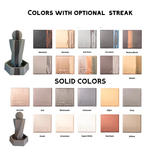 This GIST Rubix & Wok Fountain with Riser is made from GFRC (glass fiber reinforced concrete), which offers the natural appearance of stone while benefiting from durability and a lighter weight.